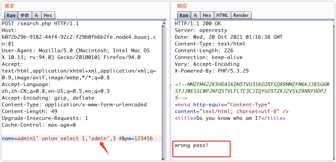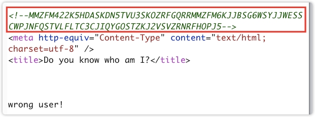 发现页面存在注释信息,进行解码发现需要先base32解码然后再base64解码,得到内容: