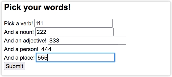 madlib = f'To find out what this is you must {verb} the internet then get to the {noun} system through the visual MAC hard drive and program the open-source but overriding the bus won\'t do anything so you need to parse the online SSD transmitter, then index the neural DHCP card {adjective}.{person} taught me this trick when we met in {place} allowing you to download the knowledge of what this is directly to your brain.'
